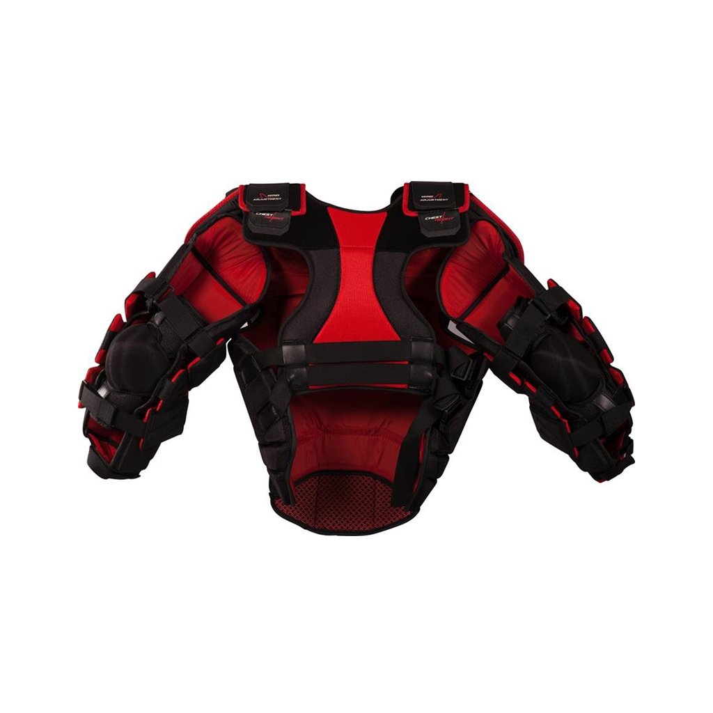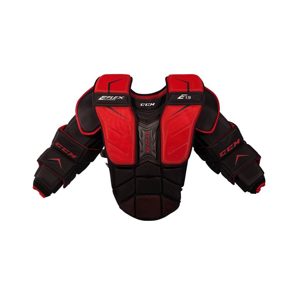 Brankářská vesta CCM Extreme Flex 1.9 s inovovanou konstrukcí a kompletně novým designem. Vesta dovoluje brankáři maximální volnost pohybu při zachování špičkové úrovně ochrany nejen díky svému provedení, ale i díky bohatému využití nejmodernějších ochranných pěnových materiálů, které skvěle eliminují následky i těch nejprudších střel. Velmi lehká a skvěle padnoucí vesta s propracovanou ochranou všech důležitých partií a širokou možností individuálního přizpůsobení. Chrániče hrudníku a břicha z HD a EPP pěnových materiálů. Špičková ochrana hrudní kosti z 3D tvarované HD pěny. Široké chrániče ramen, výplňovým materiálem je kombinace HD a PE pěny. Kryty ramenních kloubů z 3D tvarované HD pěny. Pohodlná vzdušná podšívka, komfortní možnosti nastavení a přizpůsobení. Dva široké pásky se suchým zipem na zadní straně ramen dovolují nastavit si jak vysoko nebo nízko chcete mít vestu umístěnou, samozřejmostí je nastavení paží a loktů i samotné zapínání ve spodní části zad.
