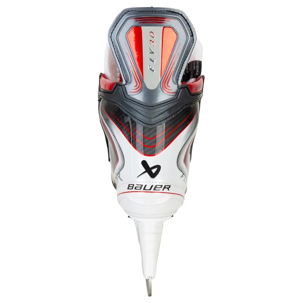 Hokejové brusle BAUER VAPOR FLY30 SENIOR jsou třetí nejvyšší model bruslí z kolekce bruslí BAUER VAPOR S25. Vysoce kvalitní a designově zdařilé brusle Vapor FLY30 jsou určeny pro náročnější hráče z řad hokejistů s frekfencí hraní 2-3x týdně.. Nejnovější generace bruslí Bauer řady VAPOR, která v sobě kombinuje nejmodernější materiály, působivý design s praktickým využitím a maximální kvalitu, kterou pocítíte už po prvním nazutí bruslí. Brusle Vapor jsou speciálně navržené pro hbité hráče s rychlou akcelerací, pro něž je typická náhlá změna směru pohybu na ledě a maximální zrychlení během jediného okamžiku. V tomto ohledu se brusle Vapor liší od řady Supreme, která je naopak ideální pro hráče s dlouhým skluzem a je tedy vhodnější k silovému stylu bruslení. Skelet brusle Bauer VAPOR FLY30 je vyroben z kompozitového materiálu 3D Injected Digi Comp, který zajišťuje maximální oporu a stabilitu chodidla. Podrážka brusle je vyrobena z kompozitového materiálu Digi Comp. Pro zajištění maximálního komfortu při hře lze brusli individuálně tepelně natvarovat dle tvaru Vašeho chodidla. Tuto službu Vám nabízíme na naší prodejně v Olomouci, rovněž si u nás můžete nechat brusle nabrousit na automatické brusce ProSharp AS 2001. V oblasti kotníku je ve výstelce použita paměťová pěna Memory Foam, která přidá na komfortu v brusli tím, že se dokonale přizpůsobí tvaru nohy hráče a tento tvar si ponechá. Plstěný dvoudílný jazyk PRO STOCK o tloušťce 40oz s integrovaným chráničem nártu zaručuje dokonalou ochranu nártu před nastřelením pukem a před nežádoucím zařezáváním tkaniček. Příslibem většího pohodlí je také technologie Collar Comfort Edge, která umožňuje efektivnější interakci mezi horní částí brusle a kotníkem, což oceníte především při odrazech. Špička brusle je vyrobena z tvrzeného plastu. Brusle je osazena bílým holderem TUUK Lightspeed Edge se systémem rychlé výměny nože. Jsou použity kvalitní nože z nerezové oceli LS + 1.3FT PROFILE stainless steel.