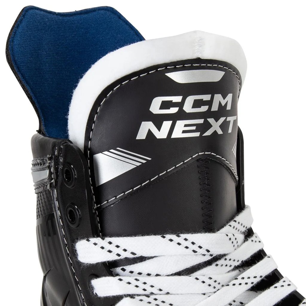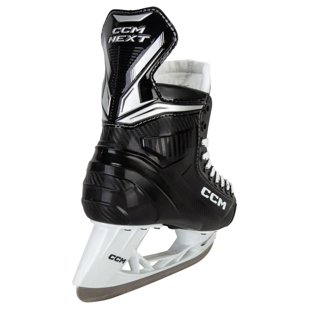 Brusle CCM NEXT určené pro rekreační bruslaře a hokejisty. Vnější materiál vstřikované 3D konstrukce poskytuje dostatečnou oporu pro nohu hráče během hry. Anatomicky velmi dobře tvarovaná bota s velmi dobrým polstrováním v oblasti kotníků. Dokonalá ochrana nártu díky zesílenému jazyku s 5mm filcem. Špička brusle je vyrobena z mrazuvzdorného plastu, takže velmi dobře chrání prsty chodidla. Lehká plastová podrážka zajišťuje dokonalý přenos energie a vysokou torzní tuhost a tím omezuje nežádoucí zkroucení podrážky při zátěži. Jsou použity bílé holdery CCM Speed Blade, které jsou v nerozebíratelném kompletu s ocelovým nožem E-Stand Blade. Brusle jsou dodávány nenabroušené, v případě zájmu Vám je můžeme dodat nabroušené na naší profesionální brusle Pro Sharp AS2001. Broušení objednáte jednoduše vložením položky Broušení bruslí v Olomouci - Hockeyland do nákupního košíku.
