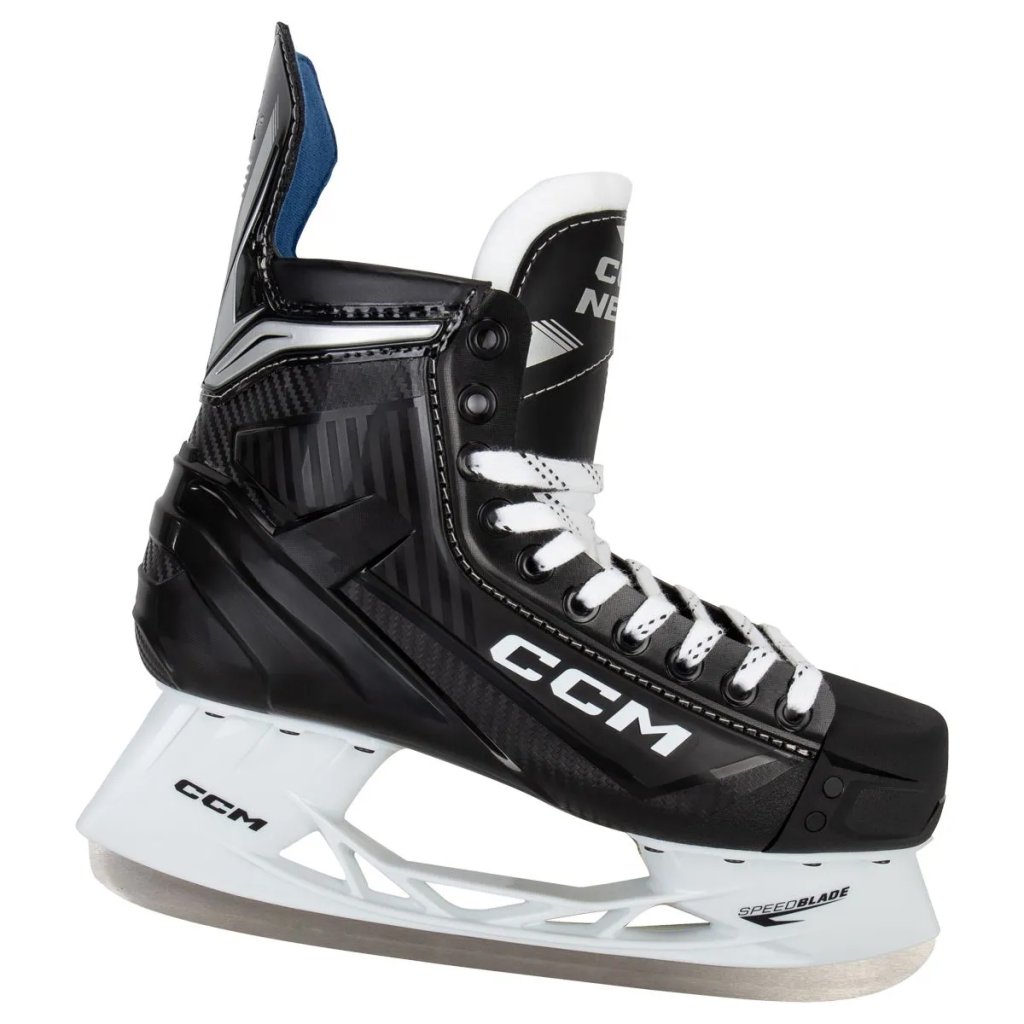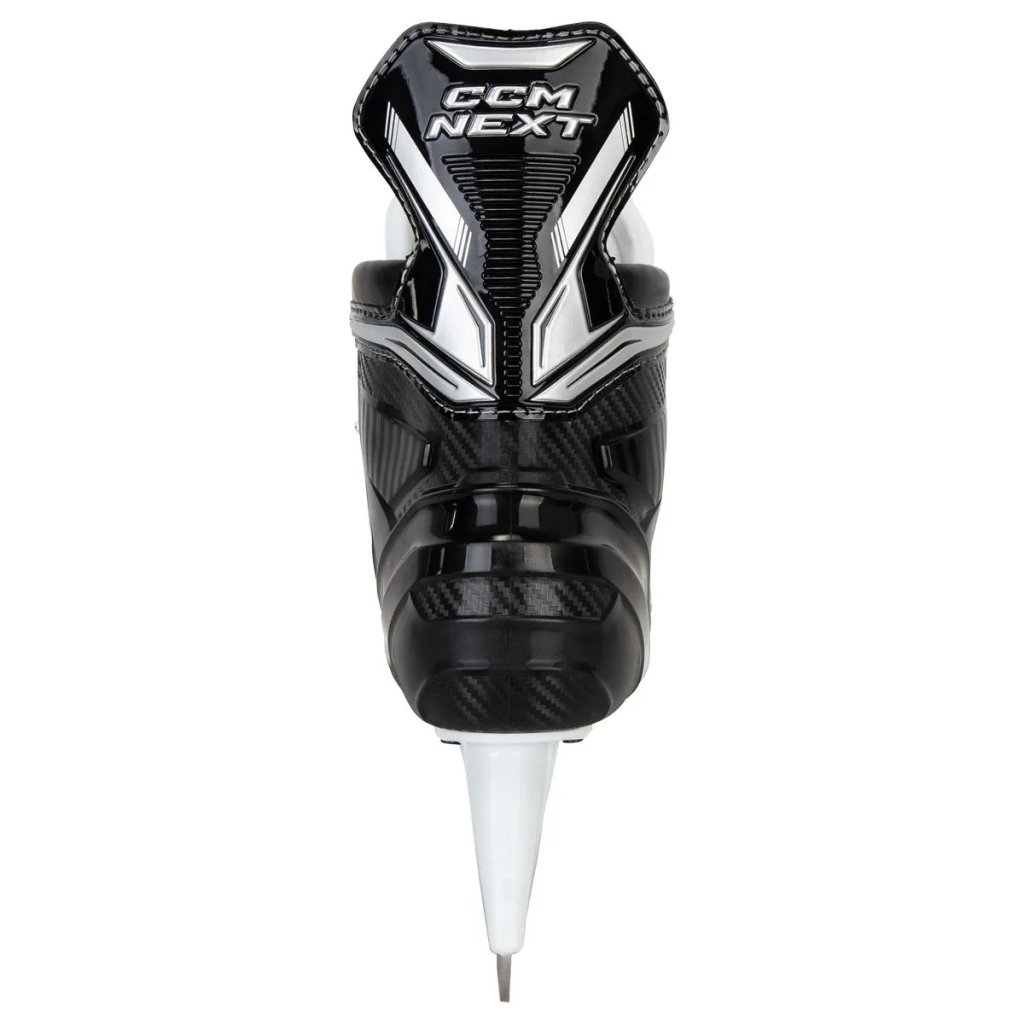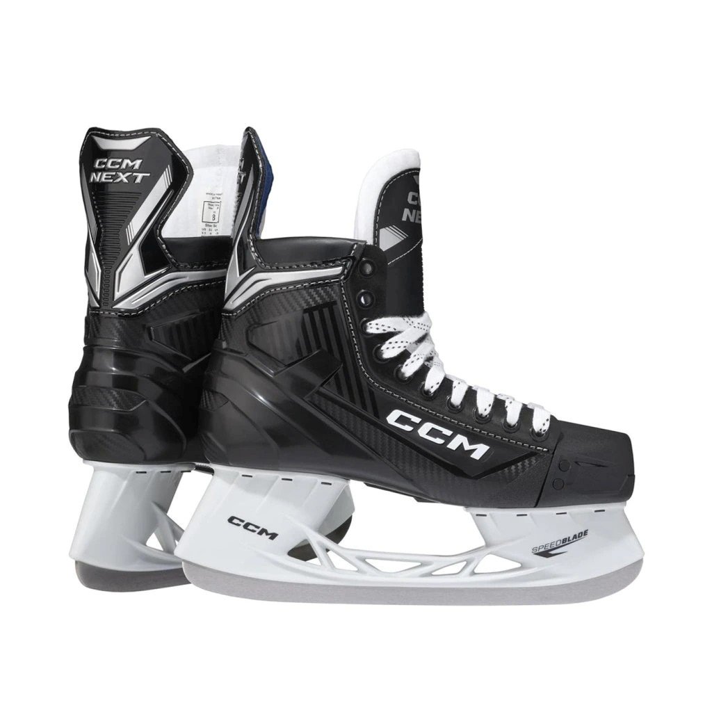 Brusle CCM NEXT určené pro rekreační bruslaře a hokejisty. Vnější materiál vstřikované 3D konstrukce poskytuje dostatečnou oporu pro nohu hráče během hry. Anatomicky velmi dobře tvarovaná bota s velmi dobrým polstrováním v oblasti kotníků. Dokonalá ochrana nártu díky zesílenému jazyku s 5mm filcem. Špička brusle je vyrobena z mrazuvzdorného plastu, takže velmi dobře chrání prsty chodidla. Lehká plastová podrážka zajišťuje dokonalý přenos energie a vysokou torzní tuhost a tím omezuje nežádoucí zkroucení podrážky při zátěži. Jsou použity bílé holdery CCM Speed Blade, které jsou v nerozebíratelném kompletu s ocelovým nožem E-Stand Blade. Brusle jsou dodávány nenabroušené, v případě zájmu Vám je můžeme dodat nabroušené na naší profesionální brusle Pro Sharp AS2001. Broušení objednáte jednoduše vložením položky Broušení bruslí v Olomouci - Hockeyland do nákupního košíku.