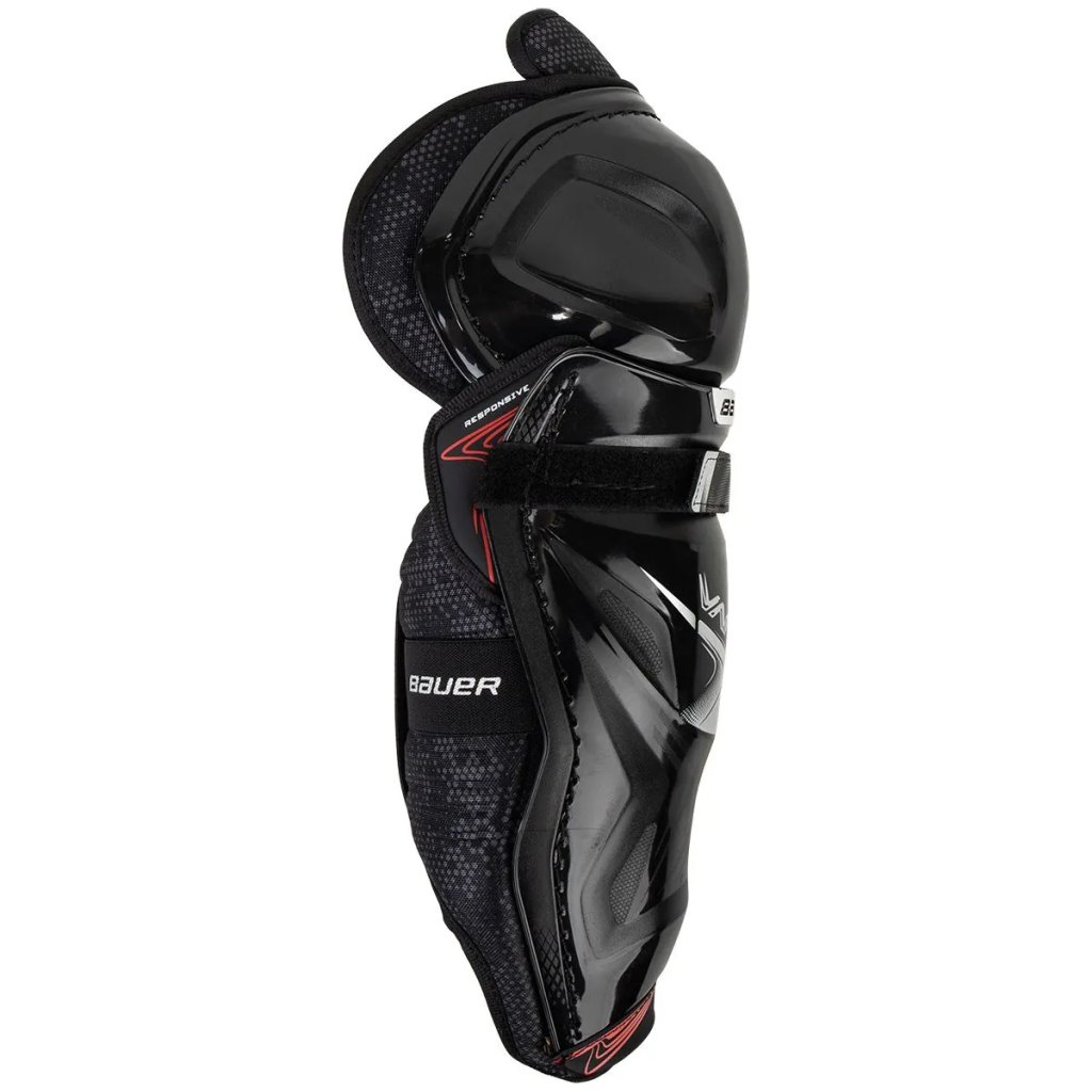 Chrániče holení Bauer Vapor FLY40 Senior jsou třetí nejvyšší model z kolekce řady VAPOR S25. Chrániče s poloprofesionální úrovní komfortu i ochrany. Kompletní překrytí lýtek, špičková podšívka, nejmodernější materiály. Nová řada VAPOR nabízí nové technologie a patenty, které byly vyvinuty na základě přímé spolupráce se špičkovými hráči. Extrémně lehké chrániče i díky použití X-LITE SHIELD materiálu, který byl navržen tak, aby poskytoval maximální pokrytí nárazu s plnou mobilitou. Ergonomické tvarování chráničů s asymetrickým designem pro dokonalé usazení na noze během hry. Vlnité - žebrované prolisy na vnější straně skeletu zajišťují výborný rozptyl síly úderu. Komfortní hluboké usazení kolena v chrániči ErgoDynamic Lab. Maximální přizpůsobení pro holeň díky materiálu vyrobenému X-LITE Shield technologií. Boční ochrana kolena ze speciální ochranné MD pěny, komfortní a odnímatelná vnitřní vložka pro koleno i celou holeň ze speciální MD pěny. Anatomicky tvarované chrániče lýtek HYPERLITE HD s PE díly, komfortní hydrofobní podšívka THERMOMAX+ zabezpečuje velmi rychlý odvod vlhkosti a rychlé vysychání chráničů po hře. Pohodlné, rychlé a jisté upínání pomocí dvou pásků se suchým zipem. Tyto holeně v kategorii Senior se vyrábí ve velikostech 15", 16" a 17".