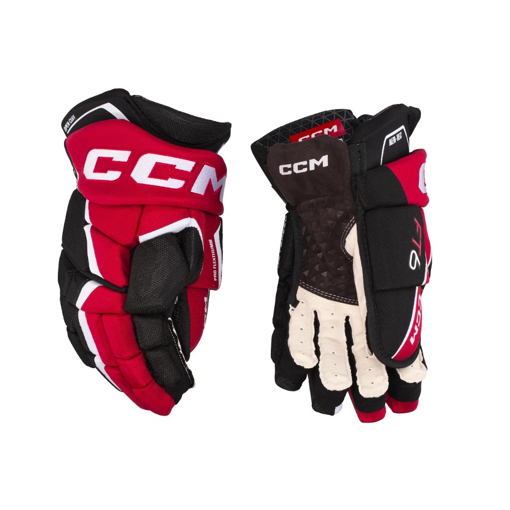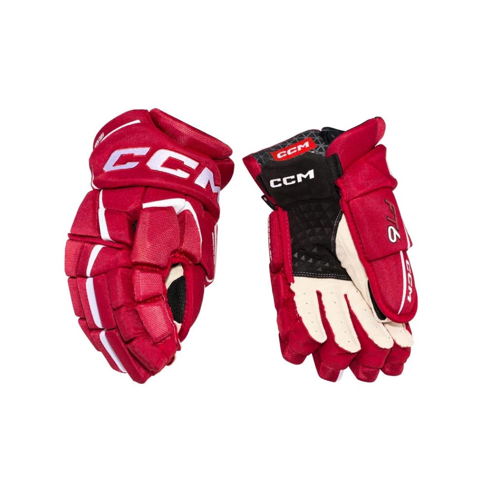 Špičkové komfortní rukavice CCM z řady CCM JETSPEED. Rukavice CCM JETSPEED FT6 jsou druhý nejvyšší model z řady JETSPEED. Rukavice ze špičkového materiálu na úrovni profi TOP modelu, s extra zesílenou dlaní. Zajišťují skvělou úroveň ochrany díky ochranné PE pěně s vloženými plastovými díly a zároveň dovolují hráči skvělou pohyblivost v zápěstí. V neposlední řadě mají velmi atraktivní design. Vnější materiál je extrémně lehký a odolný PRO-APPROVED POLYESTER špičkové kvality, s novou konstrukcí hřbetu ruky, která ještě lépe sleduje anatomický tvar ruky. Profi úroveň ochrany hřbetu ruky PRO Level PE pěnou v kombinaci s High Density PE pěnou a PE výztuhami. Podšívka je díky technologii Polygiene antimikrobiální, umožňuje maximální ventilaci a udržuje tím ruce více suché. Elitní úroveň ochrany prstů - extrémně lehký výplňový materiál Pro Level HD a PE pěna, navíc s PE výztuhami a komfortní PU pěnou uvnitř prstů pro maximální pohodlí. Špičková dvoudílná konstrukce ochrany palce PRO FLEX. Odolná dlaň z materiálu Pro Clarino Palm, se zesílenou vrstvou s reliéfním designem na nejnamáhanějším místě. Otevřená manžeta anatomické konstrukce skvěle chrání, zároveň umožňuje maximální volnost pohybu pro zápěstí během hry.
