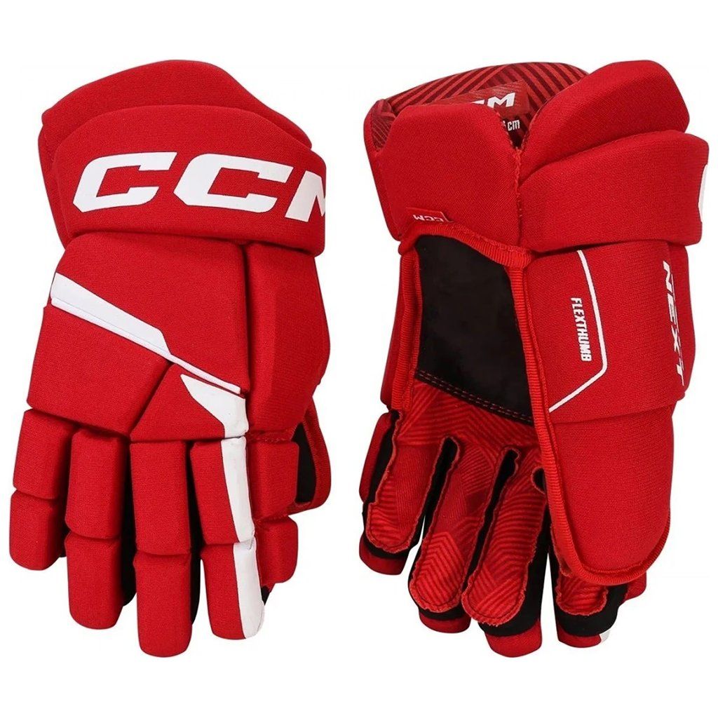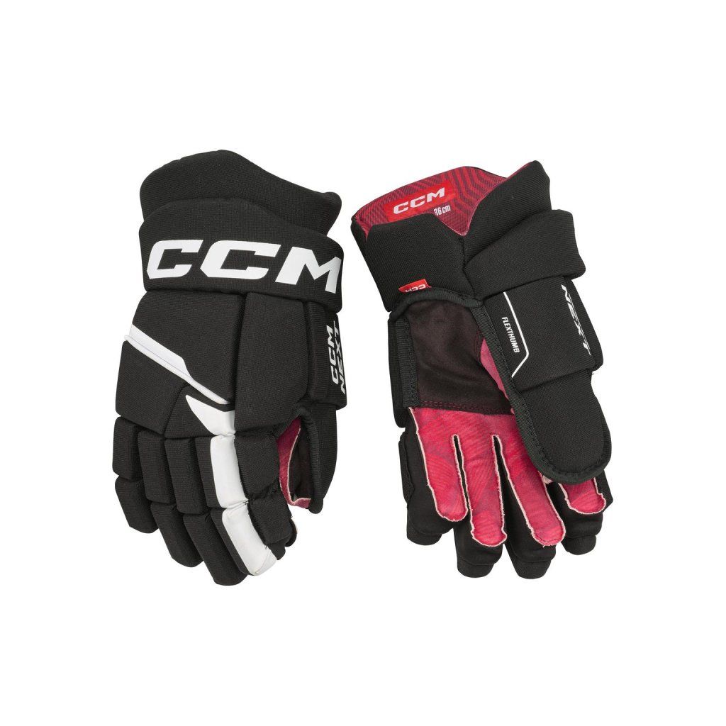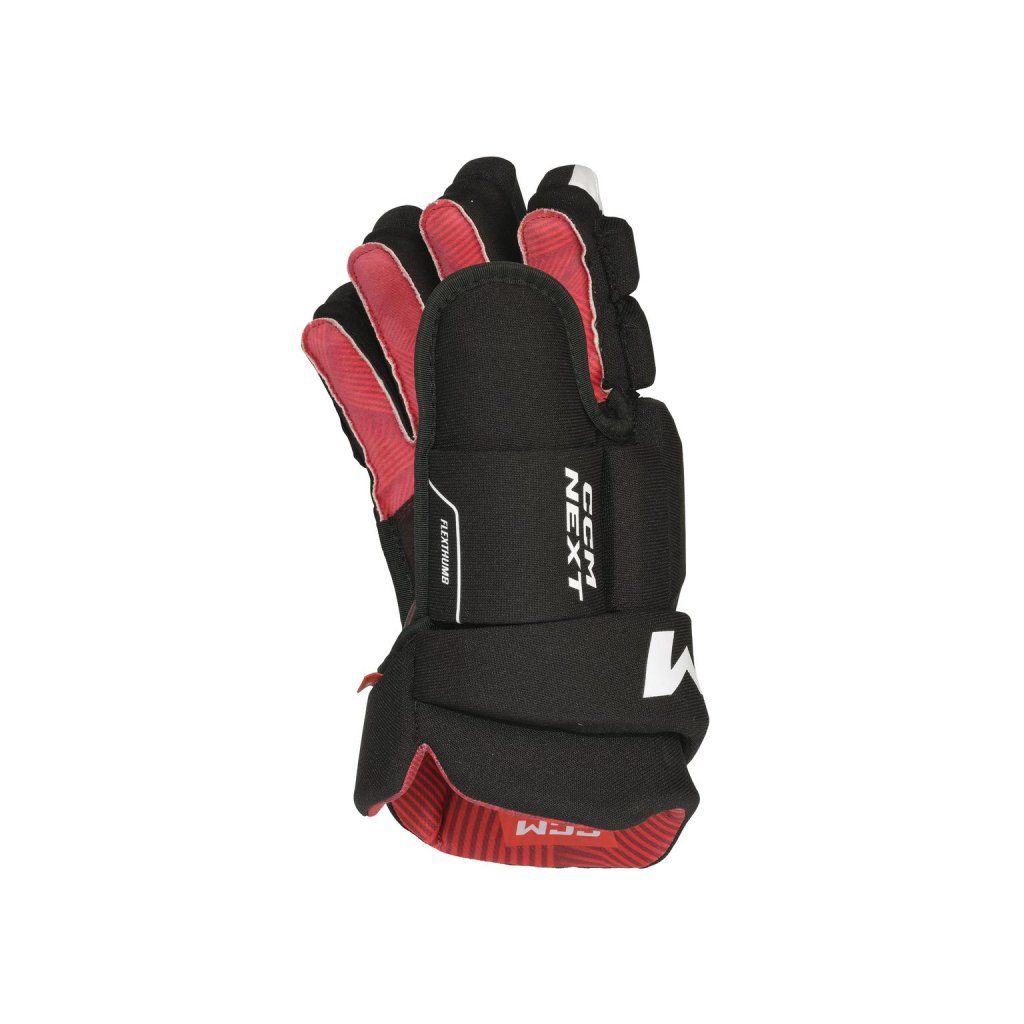 Nová řada rukavic CCM NEXT se skvělou úrovní ochrany ruky a komfortu. Rukavice CCM NEXT jsou rukavice základní výkonnostní třídy určené pro nejmenší hokejisty z kategorie YOUTH, což jsou děti ve věku cca 4 - 7 roků. Konstrukce rukavic je z odolného polyesteru, který je lehký a pevný. Hřbet rukavice spolu s prsty je tvořen PU pěnovou vložkou s integrovaným chráničem a plastovou výztuhou pro zvýšení ochrany ruky. Prsty rukavic jsou pro lepší pohyblivost a ohebnost dvoudílné konstrukce, pro zvýšení ochrany jsou vyztuženy PU pěnou. Dlaň rukavic je vyrobena z materiálu Sublimated Sensalast a v nejvíce namáhavých místech je zdvojená. Předtvarovaná jednodílná otevřená manžeta poskytuje větší volnost pohybu, flexibilitu a ochranu při hře.