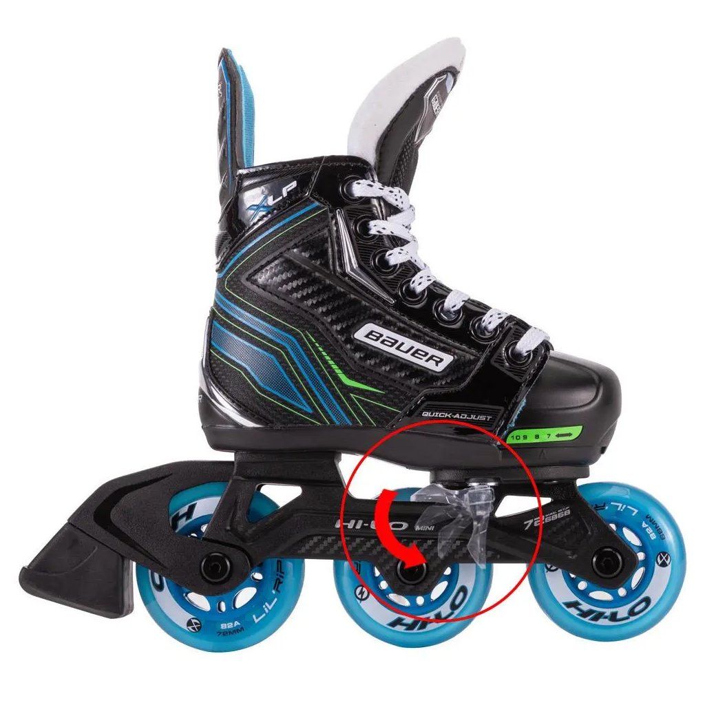 Kolečkové brusle Bauer XLP Adjustable určené pro kategorii Youth - nejmenších dětí ve věku cca 5-8 roků. Díky Adjustable (posuvnému) systému lze botu brusle zvětšit v rozsahu 4 velikostí a to od Yth. 11 až po JR. 1. Tyto brusle jsou určené jak pro inline hokej, tak i rekreační fitness bruslení. Bota brusle je injektovaně tvarovaná a je vyrobená ze speciálního plastu. Je použita plstěná výstelka a podrážka z odolného TPR plastu. Podvozky jsou použity Hi-Lo Mini Chassis s rozdílnými průměry koleček 68, 68 a 72mm, čímž je dán ideální sklon brusle při bruslení. Jsou použity kolečka Hi-Lo Lil´Ripper o tvrdosti 82A Hard, která jsou vhodná na bruslení po asfaltu. Špička brusle je celoplastová. Použitá jsou ložiska Abec 5. Tyto brusle se vyrábí pouze v jedné šiřce R - regular. Součástí bruslí je brzda na patě pravé brusle, kterou však lze zdemontovat.