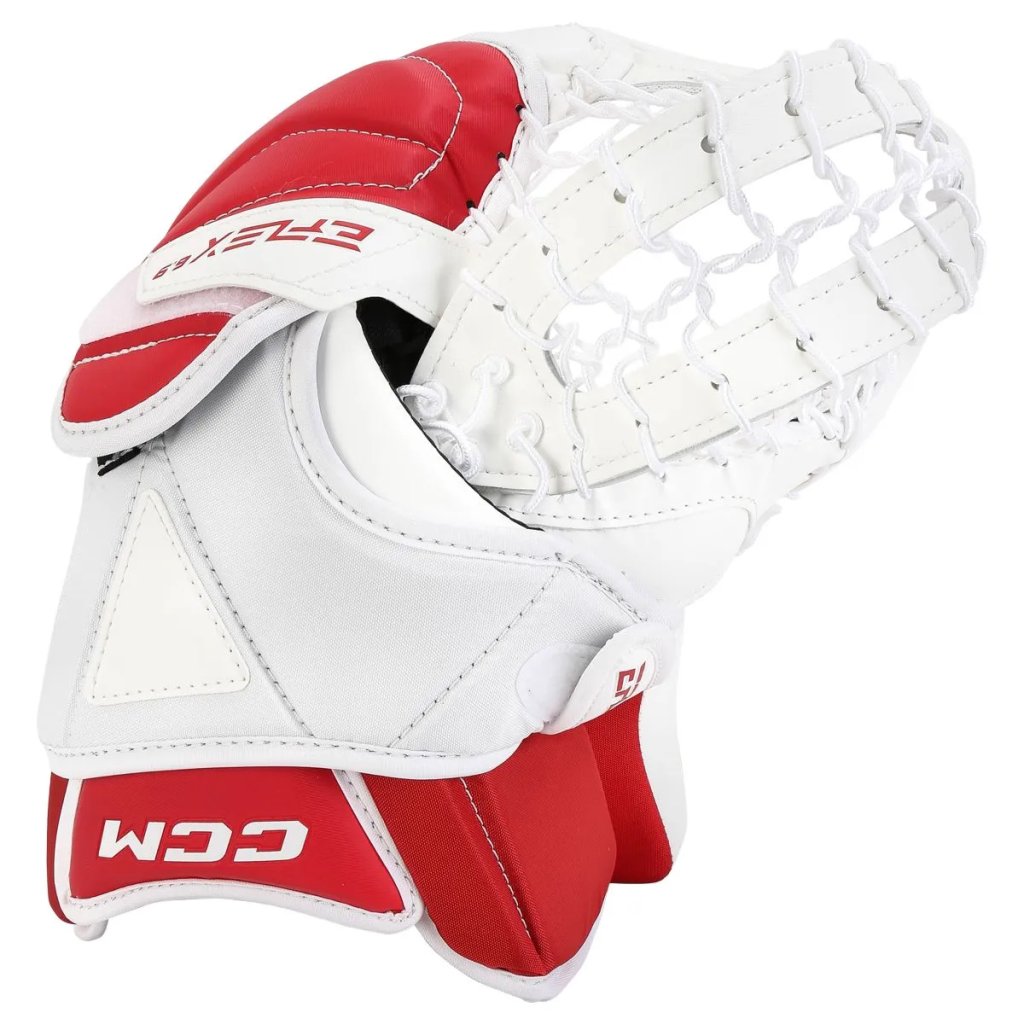 Špičková lapačka z modelové řady CCM EXTREME FLEX. Lapačka CCM EFLEX 6.9 s originální konstrukcí, která umožňuje neomezenou pohyblivost, dokonalé a jisté sevření puku a zároveň zajišťuje špičkovou úroveň ochrany. Pro ochranu ruky brankáře je na vnitřní straně lapačky použita kombinace nejmodernějších speciálních pěnových materiálů - HD, EPE a PE pěny. Rovněž pro ochranu dlaně ruky před nepříjemnými následky tvrdých střel je dlaň lapačky v nejexponovanějších místech vyztužena HD pěnou. Lapačka CCM EFLEX 6.9 pokračuje v originálním trendu nastaveném dřívějšími řadami EXTREME FLEX a využívá vstřikovanou a anatomicky tvarovanou jednodílnou konstrukci manžety spolu s chráničem palce, nově doplněná 2T košem umožňuje naprosto efektivní a bleskové sevření koše. Pro ochranu vnější strany lapačky spolu s ochranou prstů řada EXTREME FLEX rovněž využívá PE a EPE pěny, která zajišťuje perfektní ochranu především před nepříjemným seknutím holí. Materiál dlaně zajišťuje vynikající přilnavost k ruce, což zajišťuje jistější a rychlejší sevření koše a omezuje nechtěné sklouznutí lapačky. Konstrukce ze syntetické kůže a odolného nylonu. Jednodílná konstrukce manžety a ochrany palce LITECORE pro ještě lepší ochranu proti nejtvrdším střelám. Nový dvojitý koš 2T umožňuje ještě lepší a jistější zachycení puku. Nový úhel zlomu Break Angle 581 přepracovaný pro ještě lepší a jistější uzavření koše a pro ideální cit pro puk. Segmentová konstrukce zadní strany lapačky zajišťuje špičkovou ochranu brankáře. Vylepšený systém upevnění lapačky na ruce Cross Form Strap zajišťuje hřbet ruky pomocí několika upevňovacích bodů pro lepší odezvu a umožňuje větší pohyblivost zápěstí.
