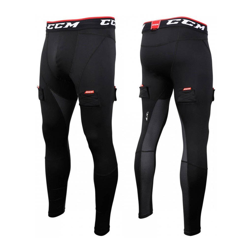 Spodní díl funčního ribana od značky CCM s integrovaným suspenzorem. Kalhoty jsou opatřeny suchými zipy v oblasti stehen pro možnost uchycení štulpen, samotný suspenzor lze vyjmout z kalhot při praní. V pase je komfortní 5cm široká guma, která je z vnitřní strany opatřena silikonovým páskem, díky kterému ribano dokonale sedí na těle. Přední strana kalhot v oblasti holenních chráničů je opatřena GRIP ZONE, což jsou gelová kolečka, které mají za úkol stabilizovat a umocnit usazení chráničů na noze. Materiálové složení 85% polyester a 15% spandex. Jedná se pouze o spodní díl - kalhoty, nikoliv celé ribano!