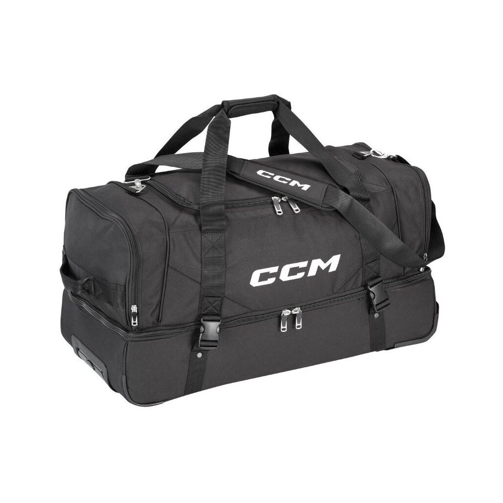 Taška na kolečkách pro rozhodčí CCM EB Officials bag. Špičková profesionální taška s dvoupatrovou konstrukcí pro uložení výbavy je vyrobena z kvalitního a trvanlivého materiálu Nylon 600D. Vnitřek tašky tvoří silně pogumovaná vrstva pro snadnou údržbu a zachování maximální hygieny. Dvě dělené vnitřní části lze odstraněním přepážky spojit v jeden velký prostor. Dvě rozměrné čelní kapsy se zapínáním na zip. Pohodlné převážení tašky díky robustním kolečkům s dezénem i do nepříznivého terénu a díky teleskopickému plastovému madlu. Extrémně robustní a trvanlivé zipy pro maximální životnost s možností uzamčení zipu pomocí zámků. Rozměry tašky jsou: (délka - výška - šířka) 76 x 41 x 36 cm. Barva černá.